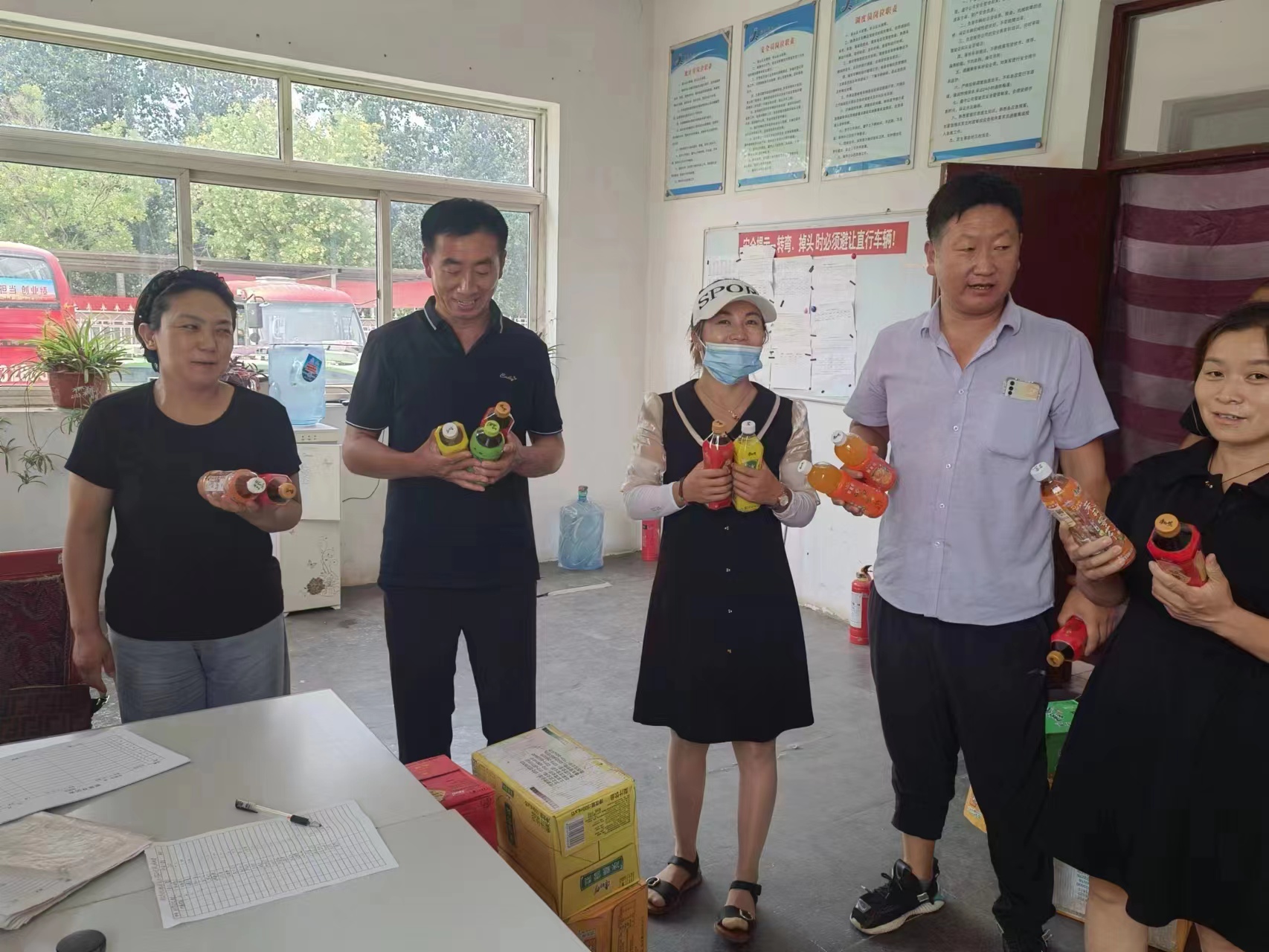 入夏以來(lái),氣溫持續(xù)攀升,為做好一年一度的防暑降溫工作,為辛勤工作的一線駕駛員師傅們和調(diào)度員們送上夏日關(guān)愛,將交通局黨委精心挑選的酸梅湯、茶飲等防暑降溫飲料發(fā)放到每名駕駛員和調(diào)度員手中。